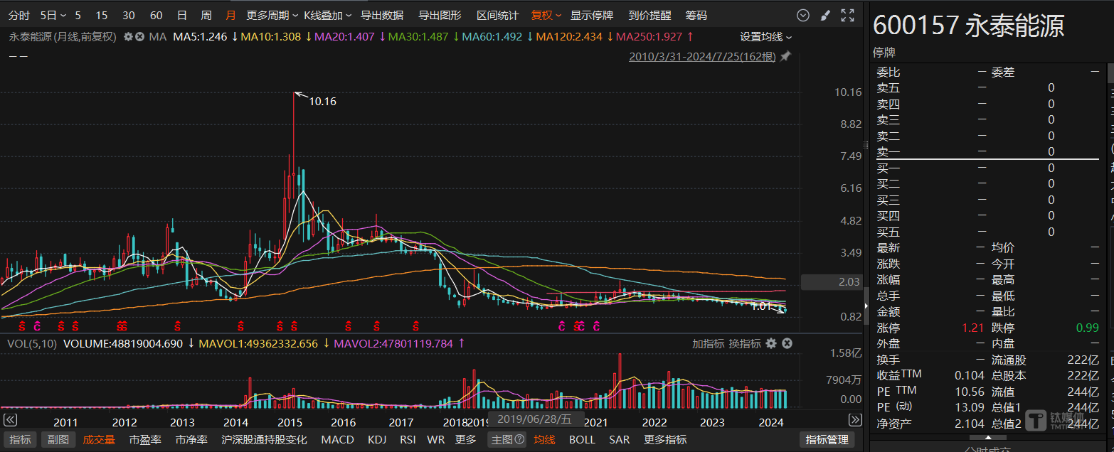 但也是经历了这轮重创后,永泰能源的股价才较为低迷,股价长期徘徊在2元左右,一直未有起色。
