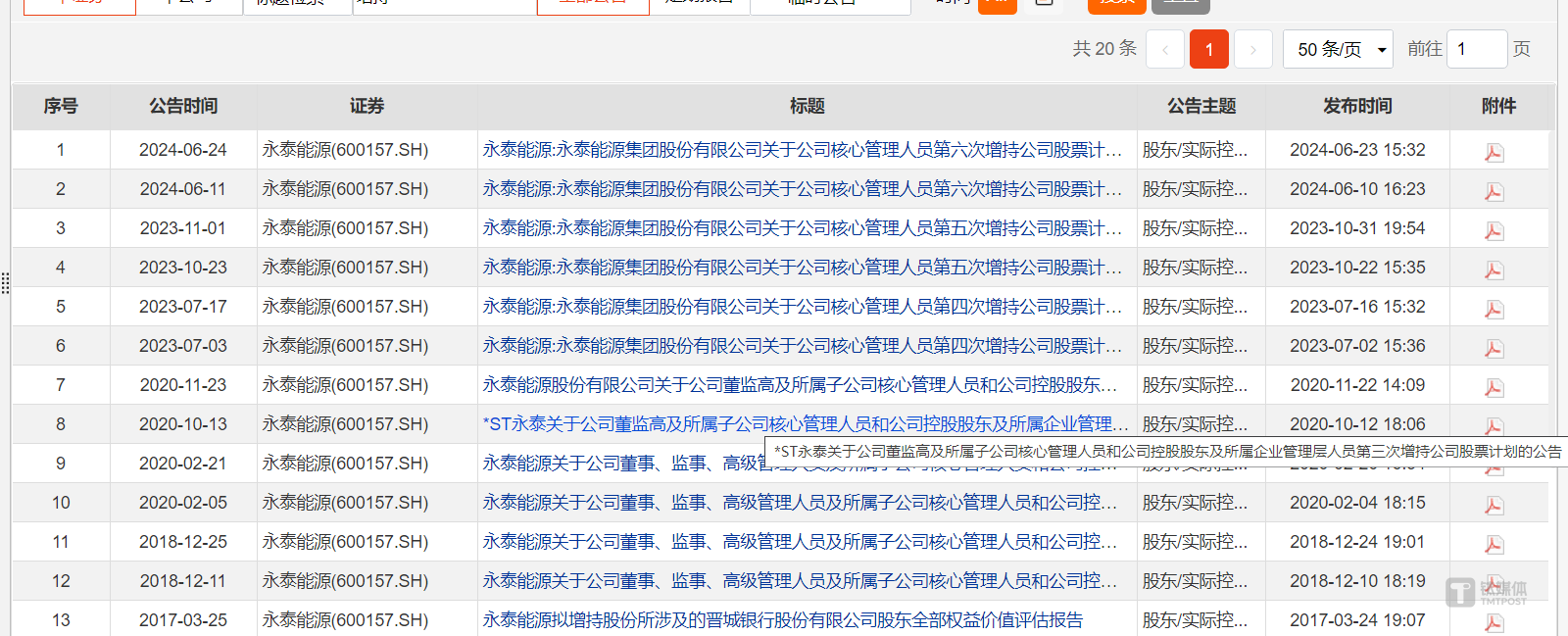 在2021年以及2022年两年里,永泰能源忙于债务重组,未有增持计划。到了2023年,公司分别于7月、10月进一步增持股票。今年6月,公司再次发布增持计划。