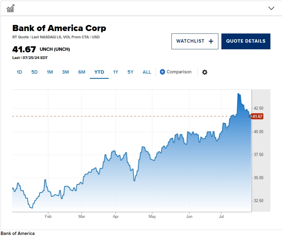 这只银行股今年上涨了24%,表现优于近15%回报的标普500指数。因此,伯克希尔可能是在美银创下自2022年3月以来的最高水平后进行了获利了结。