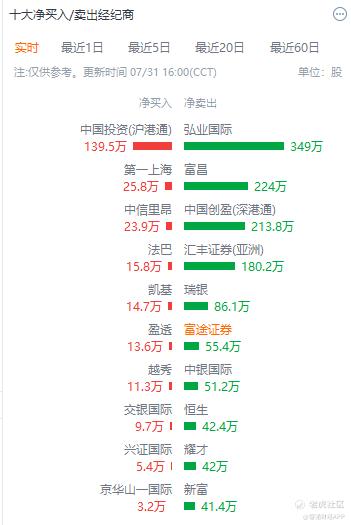 数据显示,7月31日,弘业期货获中国投资(沪港通)买入139.5万股,为第一大买入者;第一上海和中信里昂分别买入25.8万股及23.9万股,各列入第二、三大买入者席位。有买就有卖,卖方席位来看,弘业国际为最大卖出者,当日共计卖出349万股;富昌和中国创盈(深港通)为第二、三大卖方,分别卖出224万股、213.8万股。由此可见,买方席位的量较小,散户居多,而卖方量大,尤其是弘业期货自己出货量排在首位。