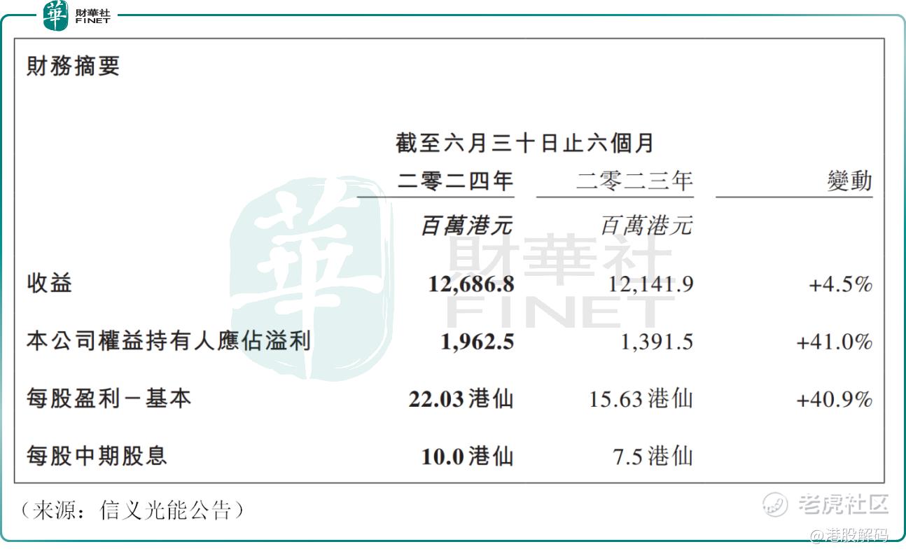 与此同时, $信义光能(00968)$发布公告,公司今年上半年实现营收126.87亿港元,同比增加4.5%,实现归母净利润19.62亿港元,同比增加41.0%。