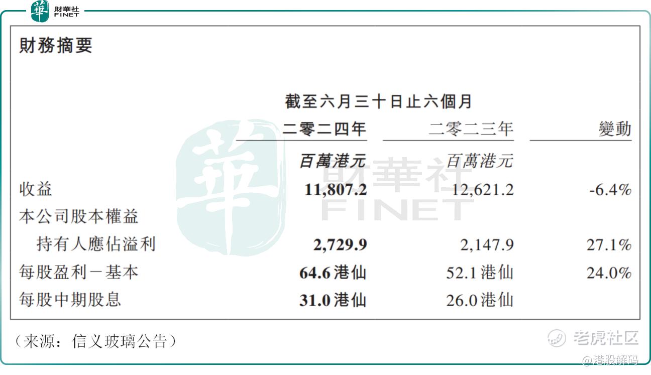据公告显示, $信义玻璃(00868)$ 今年上半年实现营收118.07亿港元,同比减少6.4%。