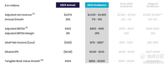由于其FS业务的强劲增长势头,SoFi提高了其调整后的EBITDA和调整后净收入的指引,这是SoFi今年第二次提高其指引。该金融科技公司目前预计2024财年的调整后净收入为24.25亿至24.65亿美元,中间值增长了3500万美元。SoFi还预计调整后的EBITDA将更高,达到6.05亿至6.15亿美元(中间值增长了1500万美元)。
