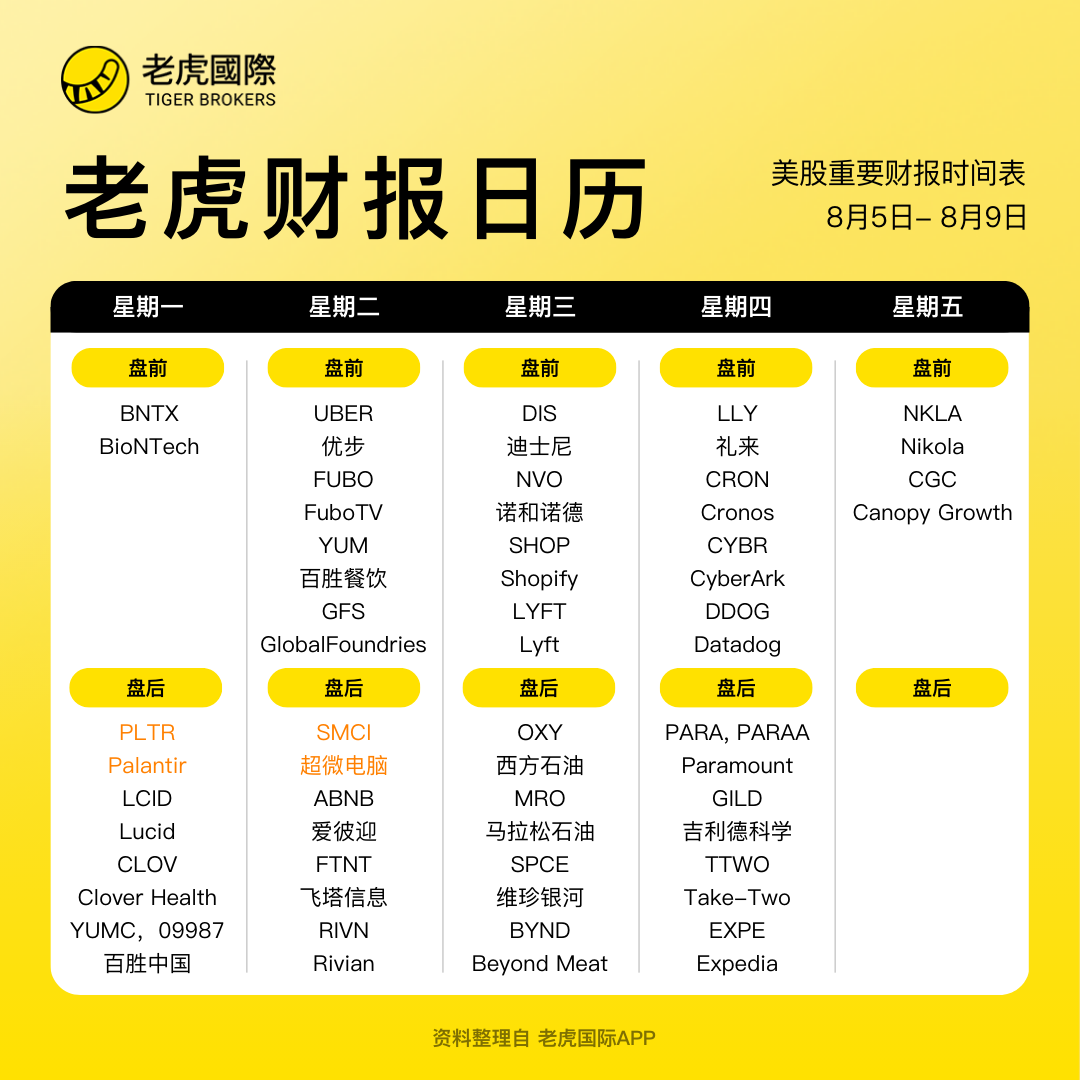 本周有多家美股成长股,绩优股等将公布财报,此外 $Palantir Technologies Inc.(PLTR)$ , $超微电脑(SMCI)$ 等重磅科技股财报也将来袭![666]