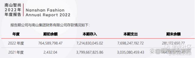 李德林表示,南山智尚上市前的2019年营收17.71亿,上市当年的2020年只有13.58亿,到2023年为16亿。可见融资11.47亿资金并没有带来营收的增长。相反,南山智尚每年跟南山集团旗下财务公司大规模的资金往来引发了交易所的关注。2021年,南山智尚存入财务公司资金高达37.99亿,期末余额7.64亿,到了2022年存入金额超过72亿,2023年存入金融更是超过77亿。