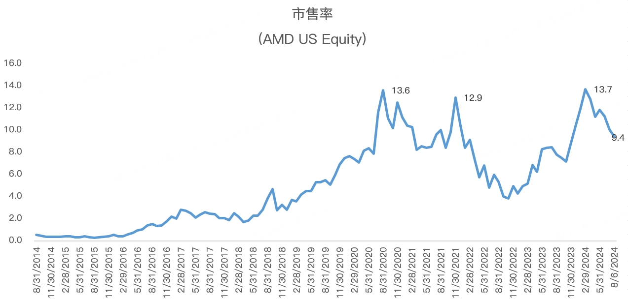AMD同样如此,目前的市销率明显低于上一轮半导体大牛市,而且,最关键的是,下半年AMD的营收将恢复增长,预计三季度营收增速为15.5%,预计四季度在22%左右!
