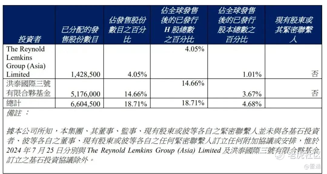 众淼控股引入洪泰国际三号有限合伙基金、The Reynold Lemkins Group (Asia) Limited两名基石投资者,分别认购3623.4万港元、1000万港元,一共认购4620万港元。