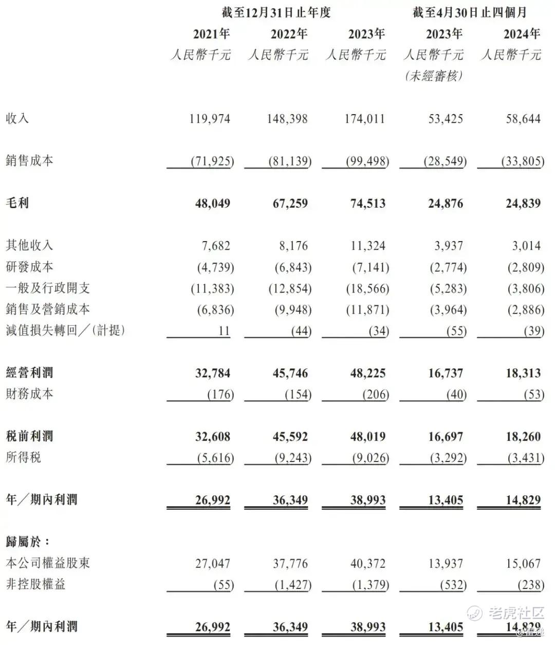 众淼控股2024年前4个月营收5864万,上年同期的营收为5343万元;毛利为2484万元,期内利润为1483万元,上年同期的期内利润为1341万元。