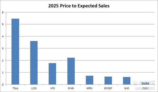 如果你对除Lucid以外的7家公司进行平均,结果是其2025年预期收益的1.66倍。Lucid周一收于3.60倍,这是在盘后交易中又一次个位数的涨幅之前。如果不包括特斯拉,平均市盈率仅为1.02倍,这还不包括福特和通用汽车等传统汽车制造商,它们的市盈率约为0.30倍。