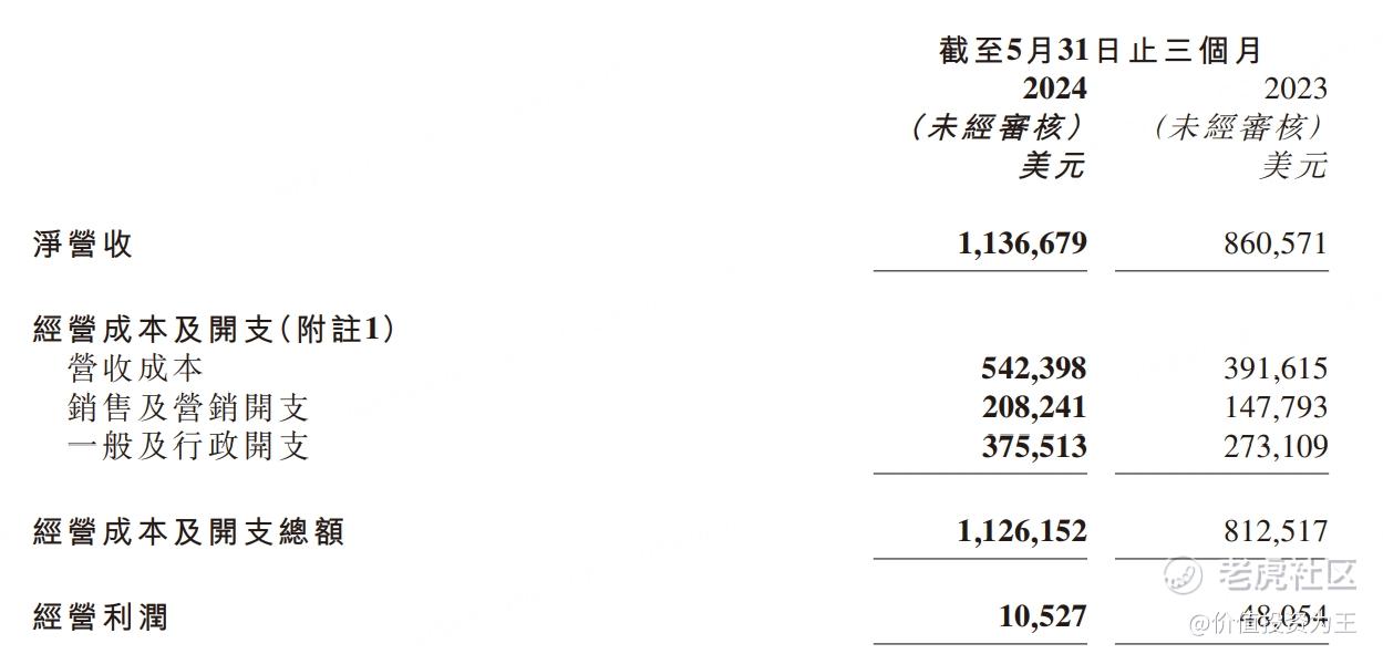 从成本和费用来看,虽然收入大幅增长,但成本和费用增加的幅度更大,比如24财年四季度经营成本5.4亿美元,同比增长38.5%;再如销售开支2.08亿,同比大增40.9%;行政开支3.76亿,同比大增37.5%: