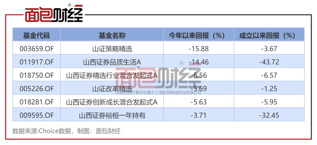 根据不完全统计,截至2024年8月6日(下同),山西证券在管的6只权益公募产品(初始基金口径)成立以来收益率均告负。