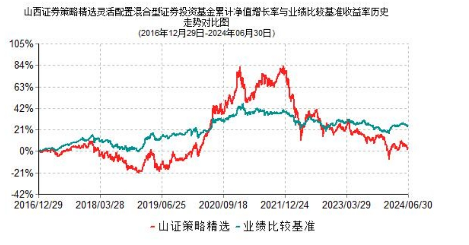 截至2024年8月6日,山证策略精选年内净值下跌15.88%,跑输业绩比较基准逾17个百分点。从长期业绩表现来看,山证策略精选成立7年多净值累计下跌3.67%,跑输基准逾25个百分点。