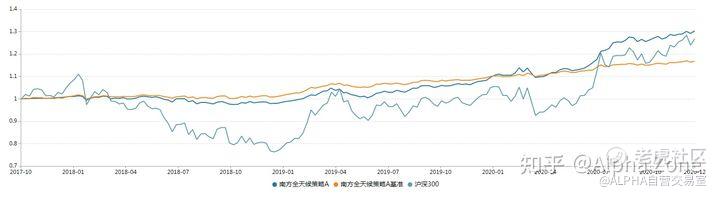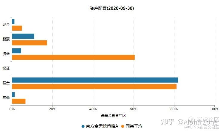 这幅图里大家可以请出的看到这个南方全天候策略fof里面 有超过80%的资金投资到基金中。而且整个收益是比较稳定的虽然从图上看只是勉勉强强超过沪深300,但是稳定性却很高,如果是求稳的朋友不妨试一下这类FOF基金。
