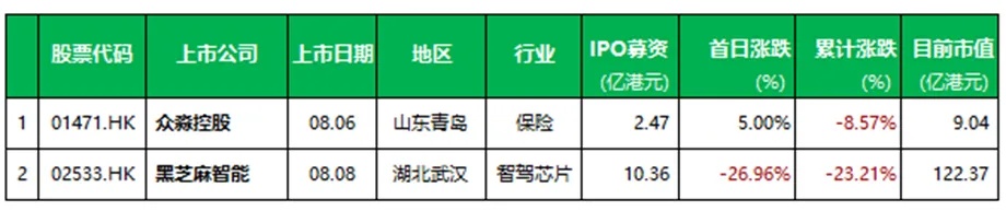 黑芝麻智能、众淼控股,本周2家新股香港上市 | 香港IPO周报 (截至20240809)