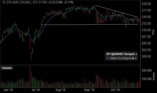 周五FBI 宣布重新调查希拉里的邮件泄露,这给最后的选情再次增加了不确定因素。我们现在在最好的时间段,bulls最好赶快出现,否则市场危险了。小盘股已经向下走了,大盘股也有危险。除了几个重点股,现金还是最佳选择。
