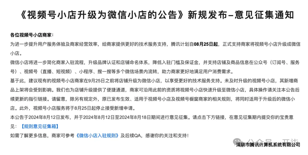话说,今天一早,腾讯悄咪咪地发了一则通知,说是,视频号小店升级为了“微信小店”。