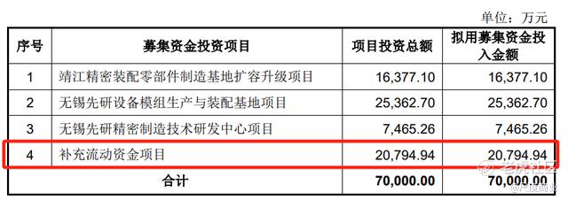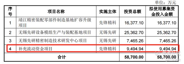 据先锋精科的此前招股书,公司拟募资7亿元,募投项目包括靖江精密装配零部件制造基地扩容升级项目、无锡先研设备模组生产与装配基地项目等四个项目,其中2.08亿元拟用于补充流动资金。