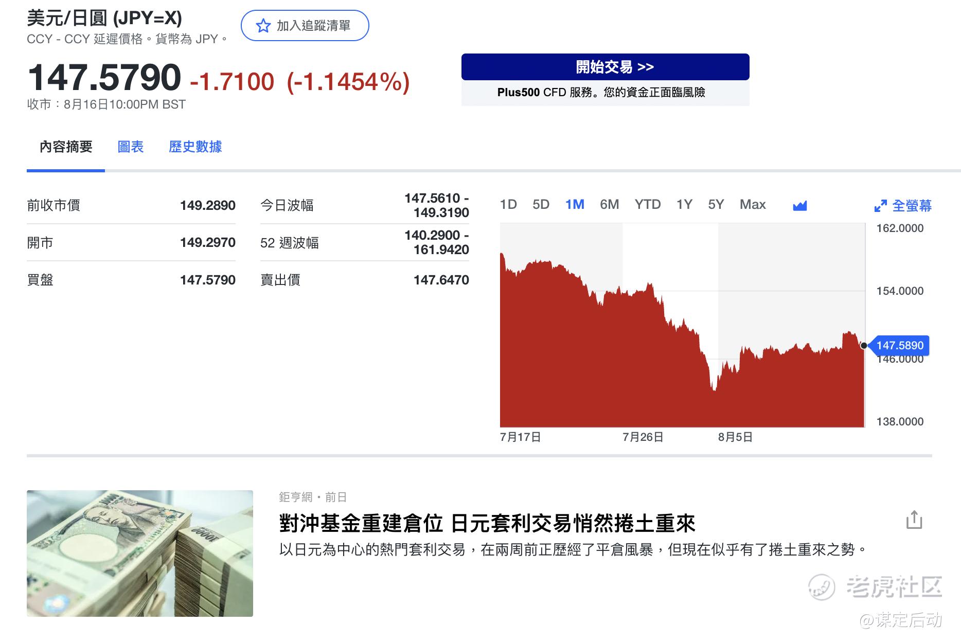 在8月5日以来,日元兑美元的汇率已经贬值超过5%。这段时间,日本央行采取了鹰派的政策行动,美企财报的不确定性和疲弱的非农就业报告,推动了日元升至7个月来的高点。然而,随着市场情绪的变化,日元套利交易又开始卷土重来。