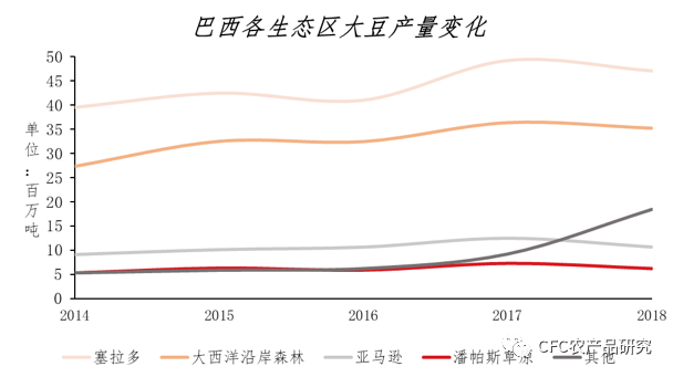 【巴西各生态区大豆产量变化】