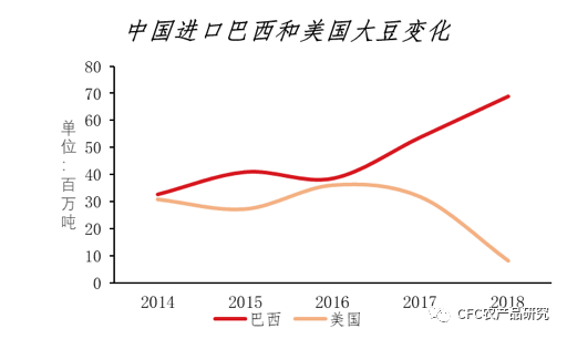 【中国进口巴西和美国大豆变化】