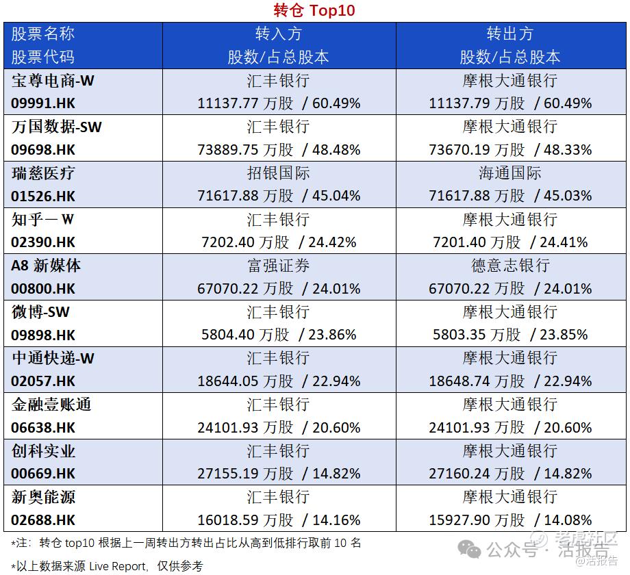 异动追踪周报:近千只个股从摩根大通转仓汇丰,涉及货值约6000多亿港元
