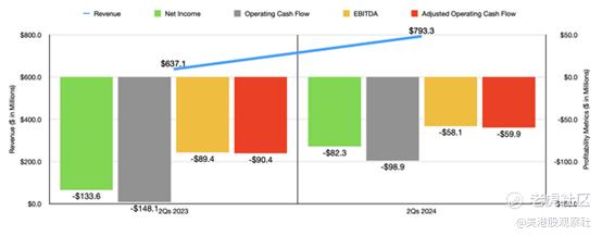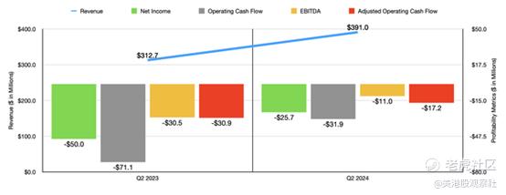 在利润上也有改善。在今年第二季度,fuboTV产生了2570万美元的净亏损。这仅仅是去年同期报告的5000万美元亏损的一半多一点。利润上的其他改善也出现了。经营现金流从负7110万美元大幅改善到负3190万美元。如果我们调整营运资本的变化,得到的改善是从负3090万美元到负1720万美元。