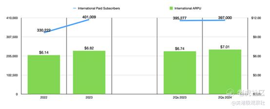 管理层对今年剩余时间的前景似乎也相当乐观。当该公司公布今年第一季度的业绩时,它表示,到今年年底,其北美业务的付费用户将在167.5万至169.5万之间。但在第二季度财报发布中,该公司将这一预期上调至172.5万至174.5万之间。因此,营收指引也从15.25亿至15.45亿美元上调至15.7亿至15.9亿美元。该公司在国际市场的总营收预计将保持在3300万至3500万美元之间。