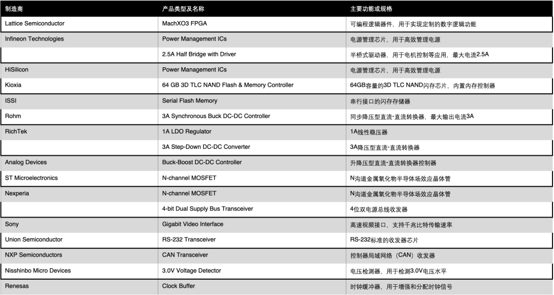 为了实现高效的电源管理,控制器使用了英飞凌、海思、和莱迪思半导体等公司的芯片。电源管理 IC 负责调节电压,确保系统在各种环境下的稳定性,并减少能耗。