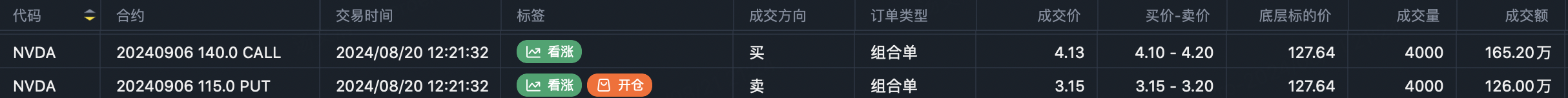这让我在思考单边趋势做期权买方,很适合用正股辅助。单腿买入基本上是背水一战,而正股涨幅能弥补买入期权时间损耗,换取一定的上涨杠杆,同时解放一些的盯盘时间。