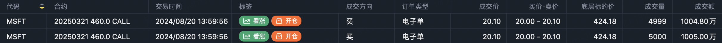 继平价sell put之后,微软又出现了买入看涨期权大单: