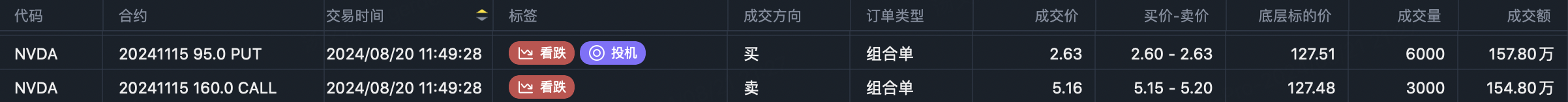 买入$NVDA 20241115 95.0 PUT$ x2倍