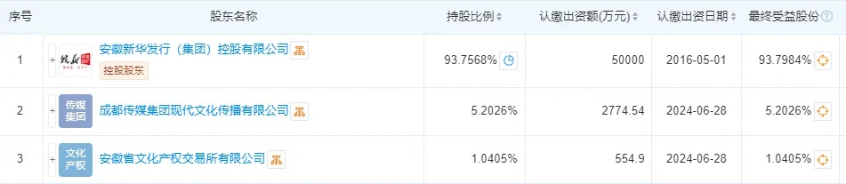 皖新租赁,成立于2014年,是经国家商务部、国家税务总局批准成立,以融资租赁为主营业务的内资融资租赁公司。 天眼查信息显示,皖新租赁法定代表人为郭宏斌,注册资本53329.44万人民币,其控股股东为安徽省政府旗下安徽新华发行(集团)控股有限公司,持有其93.7568%的股份,其他股东包括成都传媒集团现代文化传播有限公司持股5.2026%、安徽省文化产权交易所有限公司持股1.0405%。