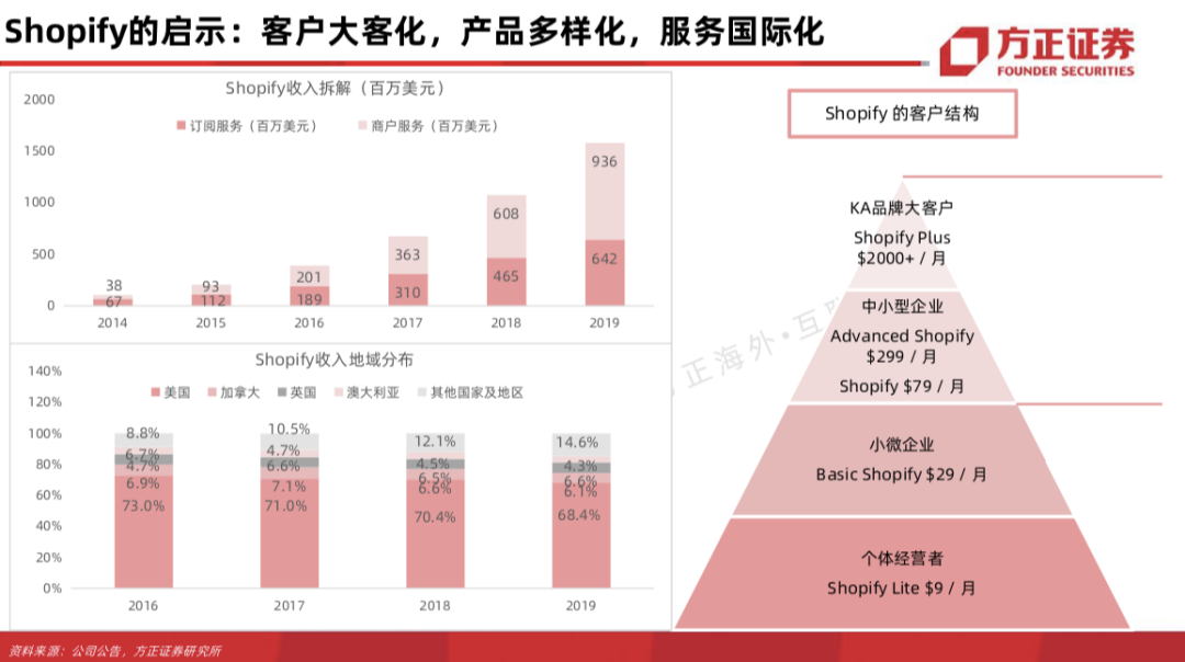 7、对标Shopify看增长启示:继续积累订阅用户数实现规模效应,发展大客品牌效应提升ARPU,全球化布局多平台布局降低单一市场的风险,利用多元化增值服务实现流量变现,并发展软件+X 拓宽业务壁垒。