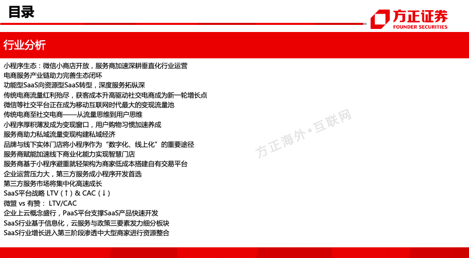 本文来自方正证券研究所于2020年4月5日发布的报告《雾里看花——电商SaaS深度对比报告(微盟vs有赞)》,欲了解具体内容,请阅读报告原文。杨仁文 S1220514060006