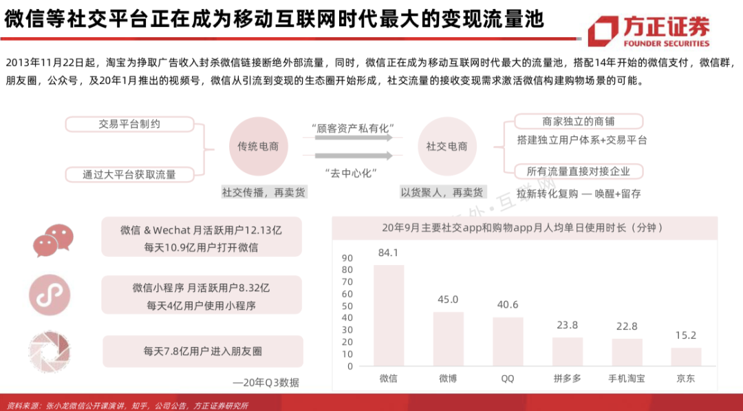 电商利润=流量*转化率*客单价*利润率,网络购物日渐普及且竞争进入白热化阶段,公域流量获客成本不断提高,互联网流量红利期接近尾声,私域流量时代来临;与此同时,线下门店数字化需求迫切,疫情催化线上消费场景,商家转型社交电商模式,加速布局小程序,在私域流量中占有一席之地。微盟和有赞通过切入SaaS平台,提供第三方技术平台,帮助不具备电商生态位的企业提供日常营销和运营方案。分散化的市场,非标准化的需求,有赞和微盟在同一赛道走出了不同的风格。本报告努力解决以下问题: