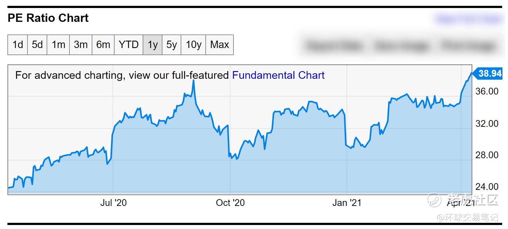 图:谷歌过去一年PE,来源:Ychart