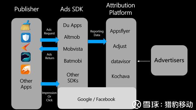猎豹某高层人士接受黑奇士采访时指出,自己的海外业务与国内不同,并不直接从广告商那里获取赏金,而是收取SDK的“摊位费”,这个费用与SDK的广告展现和转化率相关,抢归因并不能带来明显的商业利益。