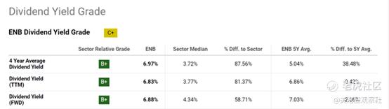 最后一个催化剂就不得不提到它丰厚的股息收益率。下图显示了Enbridge股票相对于行业中位数及其自身历史平均水平的股息等级。如上所述,Enbridge目前的股息收益率为6.88%(基于FWD),明显高于4.34%的行业中位数(差距超过58%)。Enbridge目前的股息收益率略低于其5年平均水平,在长期均值和远期均值的基础上分别相差-0.42%和-2.06%。如此小的差异表明了一个非常合理的估值。