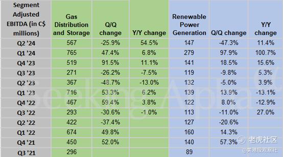 如上所述,Enbridge在可再生能源方面的举措是未来几年另一个关键的增长催化剂。为了更好地说明情况,下表比较了Enbridge核心天然气分销和储存(GDS)部门的EBITDA与可再生能源发电(RPG)部门的EBITDA。诚然,与GDS相比,RPG领域产生的EBITDA收益仍然要少得多。GDS业务仍在以健康的速度增长。然而,正如数据所示,RPG领域最近呈现出更加稳定和快速的增长,在过去几个季度中,年增长率从3.9%到100%不等。