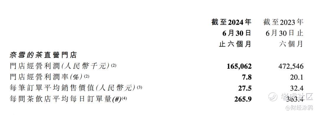 财报显示,今年上半年奈雪直营门店经营利润率为7.8%,去年同期为20%;每笔订单平均销售价值为27.5元,去年同期为32.4元;每个茶饮门店平均订单量为265个,去年同期为363个。