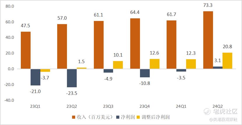 8月26日美股盘后,全球领先的IoT云开发平台提供商涂鸦智能发布了二季度财报,大超市场预期。根据财报,2024年Q2,涂鸦智能实现收入总收入为7330万美元,同比增长约28.6%,超过彭博一致预期的7000万美元,实现净利润310万美元,完成了公认会计准则下的首个盈利,并且实现调整后的净利润2080万美元,同比大幅增长了1276.5%,也远远超过了彭博一致预期的1065万美元。此外,公司还计划宣派3300万美元的特别股息,每股普通股0.0589美元或每股美国存托股份0.0589美元,以回馈投资者,提升投资者回报。