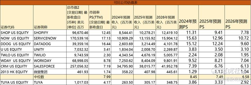图:涂鸦智能可比公司估值