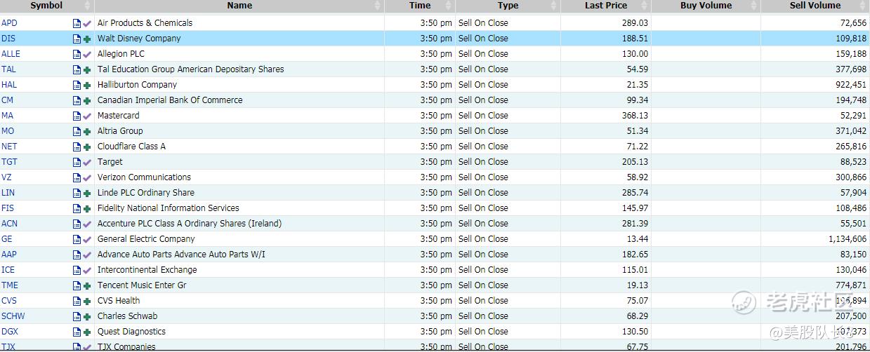 周一Moc大资金卖出排行榜,baba,xom,dis,tme上榜