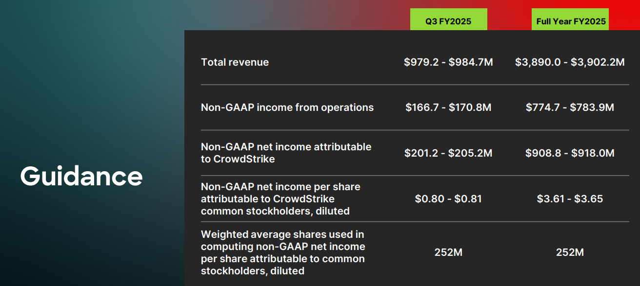 尽管在7月16日“Channel File 291 Incident”之后,CrowdStrike对2025财年的展望依然乐观,但指引仍然相对市场预期更保守。