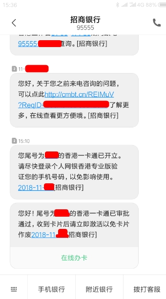 招行香港一卡通办理成功(2018年11月)