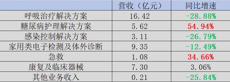 图:鱼跃医疗2024年中报分部门营收,来源:锦缎研究院