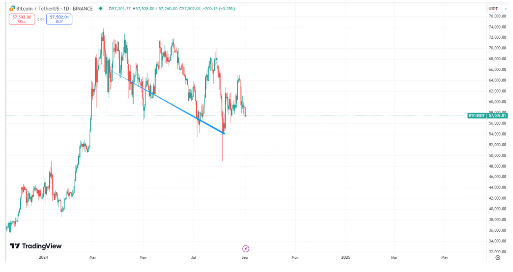 首先是在此前提及的三家马车上,黄金已经十分接近年初预期的目标价(2575+),现在再上车做多头的话,很容易高位被套浪费时间或者因为震荡而被洗走。而美股虽然趋势性依然良好,并且龙头股也有一定的韧性,但是只有趋势但目标价相对模糊的状况下,同样无法构建新的头寸来博弈。比特币当前的价格虽然有着不错的盈亏比,但是自三月份之后,币价就已经出现高点和低点不断走低的情况。定投的模式相对可靠,但也会存在一定的风险。当然,就这三者来说,理论上如果做多的话,中期空间上,还是比特币会更具优势。