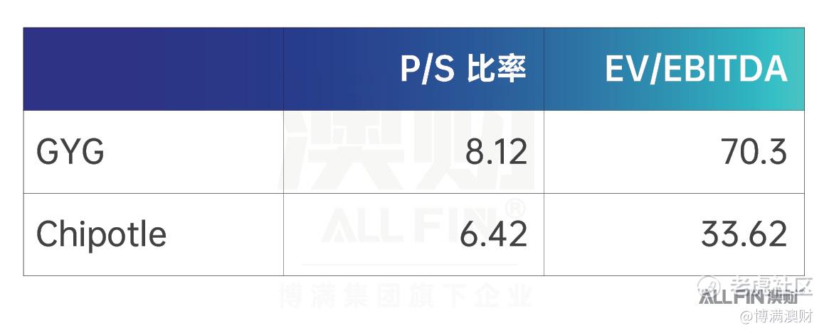 从估值的角度看,Guzman的估值甚至比Chipotle还要高。如下图所示,Guzman的P/S 比率比北美龙头还要高出一截。