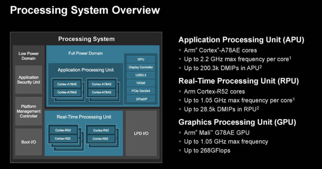 除了 Arm CPU 核心,AMD 还在其嵌入式市场中销售带有实时处理能力的 CPU 核心和 Arm GPU,这些模块可以提供更强大的计算能力。