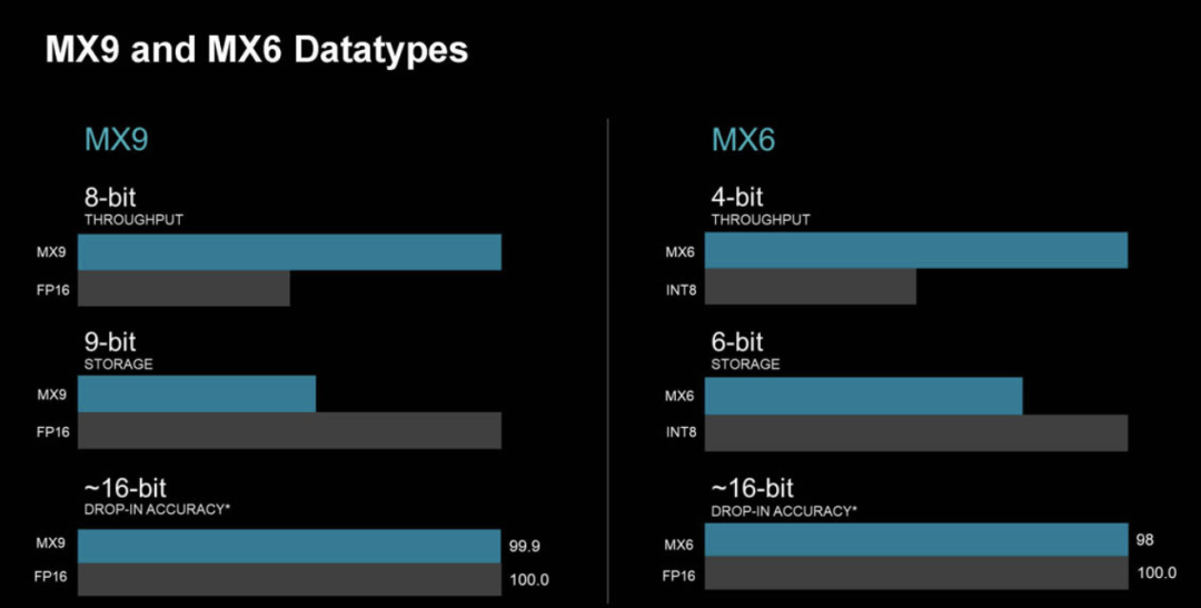 AMD 的 AI 引擎还支持多种数据类型,包括 MX9 和 MX6 数据类型,这使得芯片在处理不同数据格式时具有更高的灵活性和适应性。